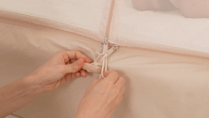 3面がジッパーで開け閉めできるので、必要に応じて1面開けてその横にもう一つのマットレスを並べて家族全員で寝ている方もいらっしゃいます。