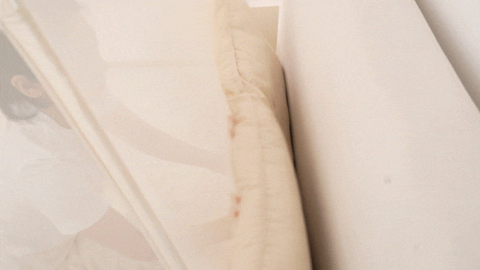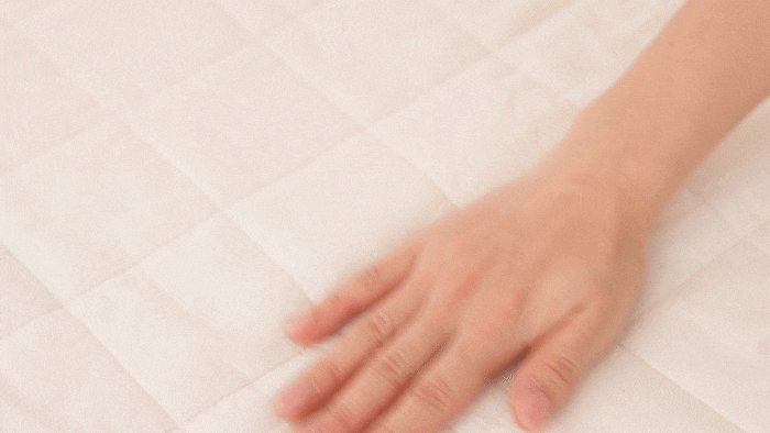 マットレスカバーのように装着するのでマットレスと商品の間に隙間が生じない作りになっています。