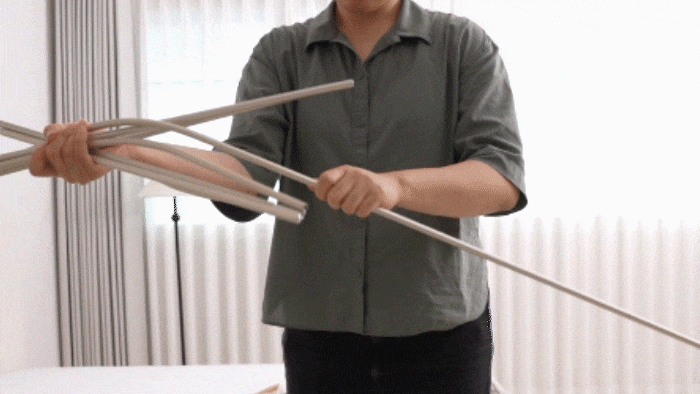 マットレスにカバーをかける形で取り付けするので、フレームへの穴あけは不要ですし、組み立てに工具も不要です。