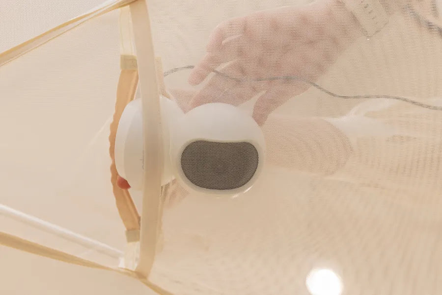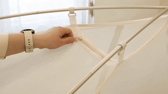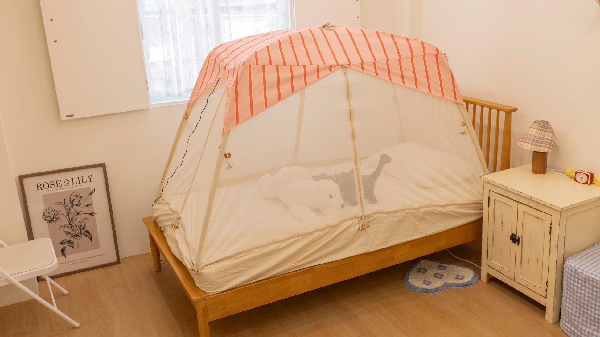 本商品は全面メッシュでできているので、通気性はありますが、やはりテントがない場合と比べると少し暑くなりやすいので、テント内の温度を確認し部屋の温度を調整することをおすすめします。
