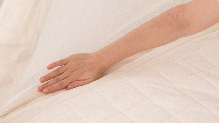 マットレス下にカバーを潜り込ませるように装着するので、約20kgのマットレスの重みで商品が安定します。